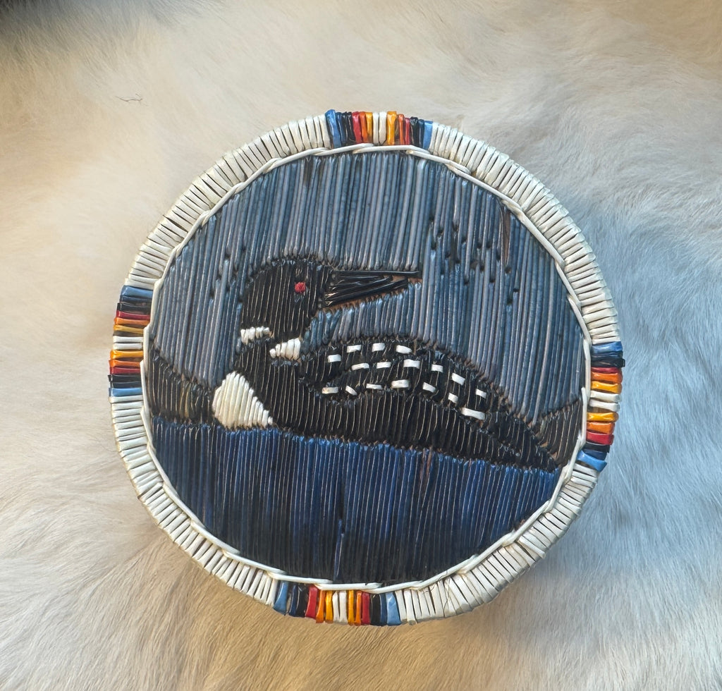 Originally, natives made bowls and baskets from birch bark to collect berries and for storage. They were left behind when the tribe moved on. They decorated the ones used for special occasions. It was a very eco-friendly system-- they ate the porcupines and decorated the boxes and baskets with the quills so nothing was wasted.