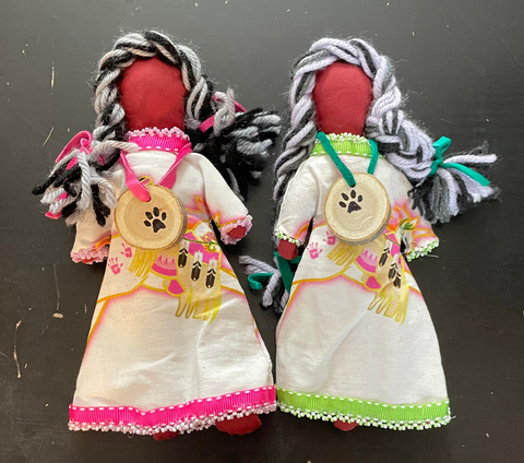 Faceless Dolls - dress with wooden medallion; by Wandering Buffalo
