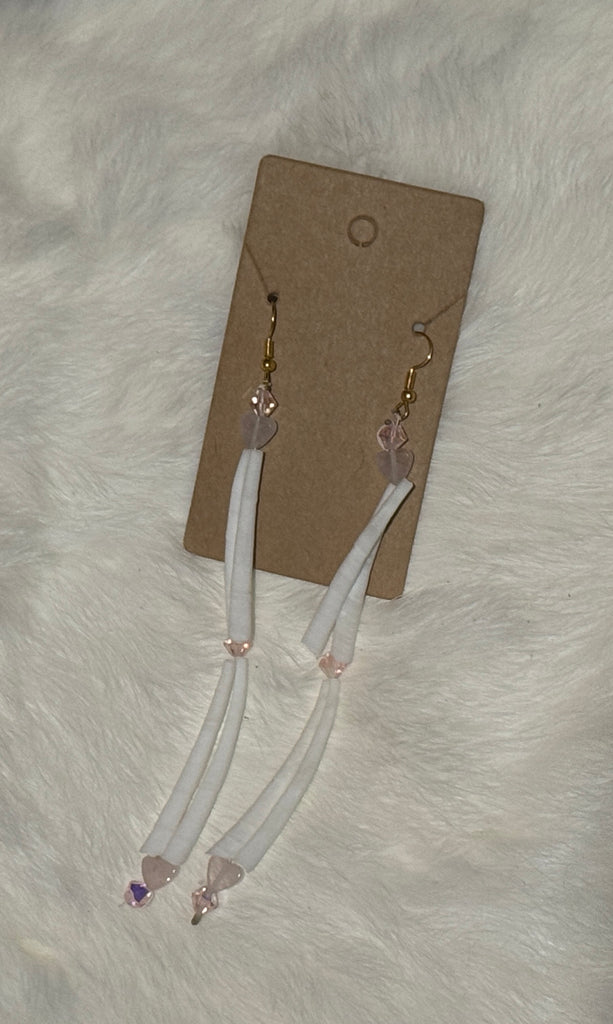 Pink Heart Double Dentalium 2 Tier Earrings; by Auntie Maymie & Nana Creations