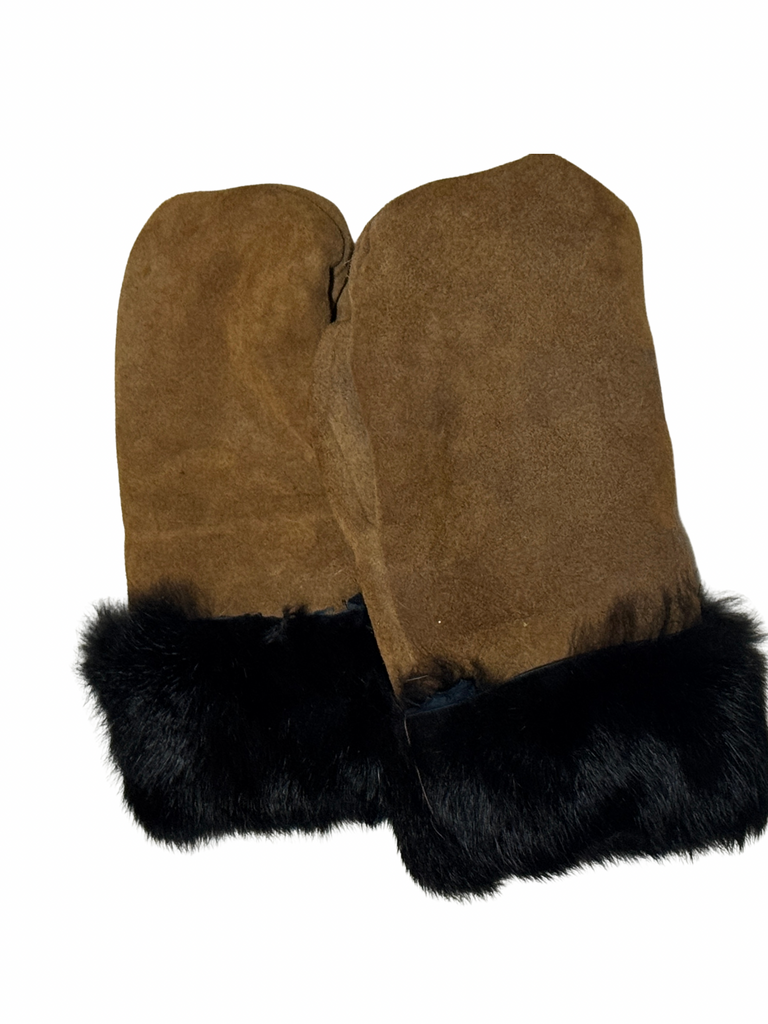 Rabbit Fur and Leather Mittens; by Auntie Maymie & Nana Creations