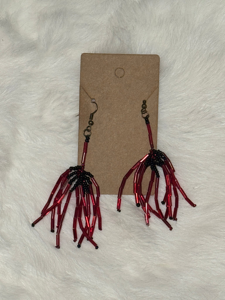 Red Beaded Dangle Earrings; by Auntie Maymie & Nana Creations